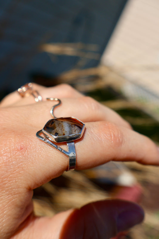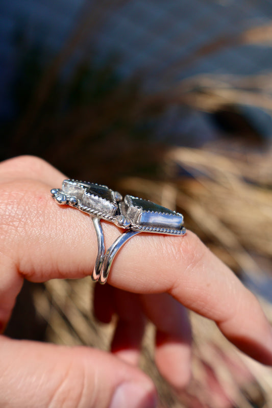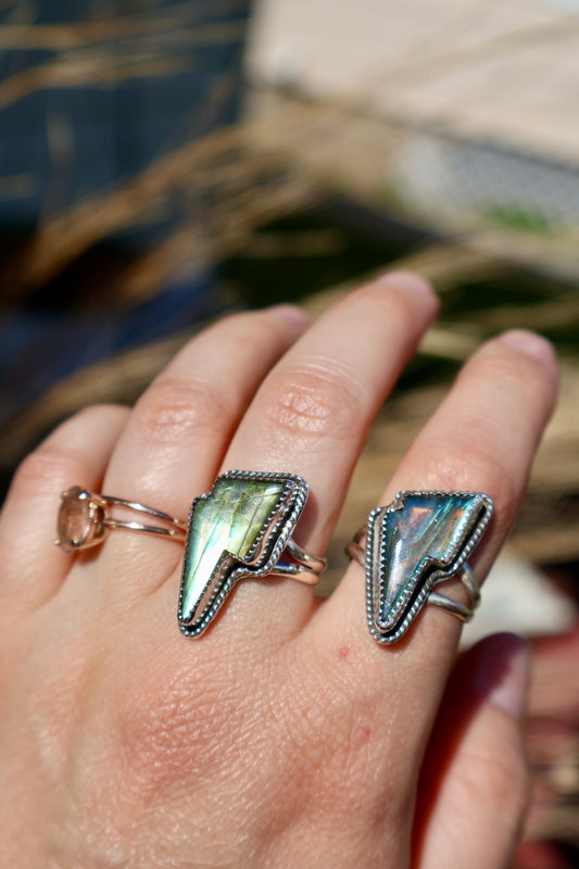 Labradorite Double Lightning Bolt Ring - Size 8.5