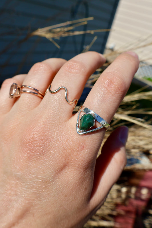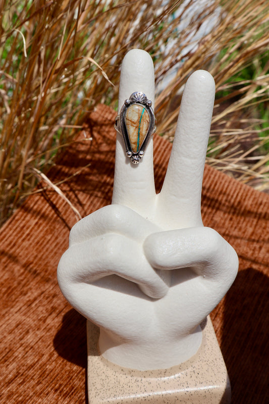 Crushed Turquoise Lightning Bolt Ring - Size 9